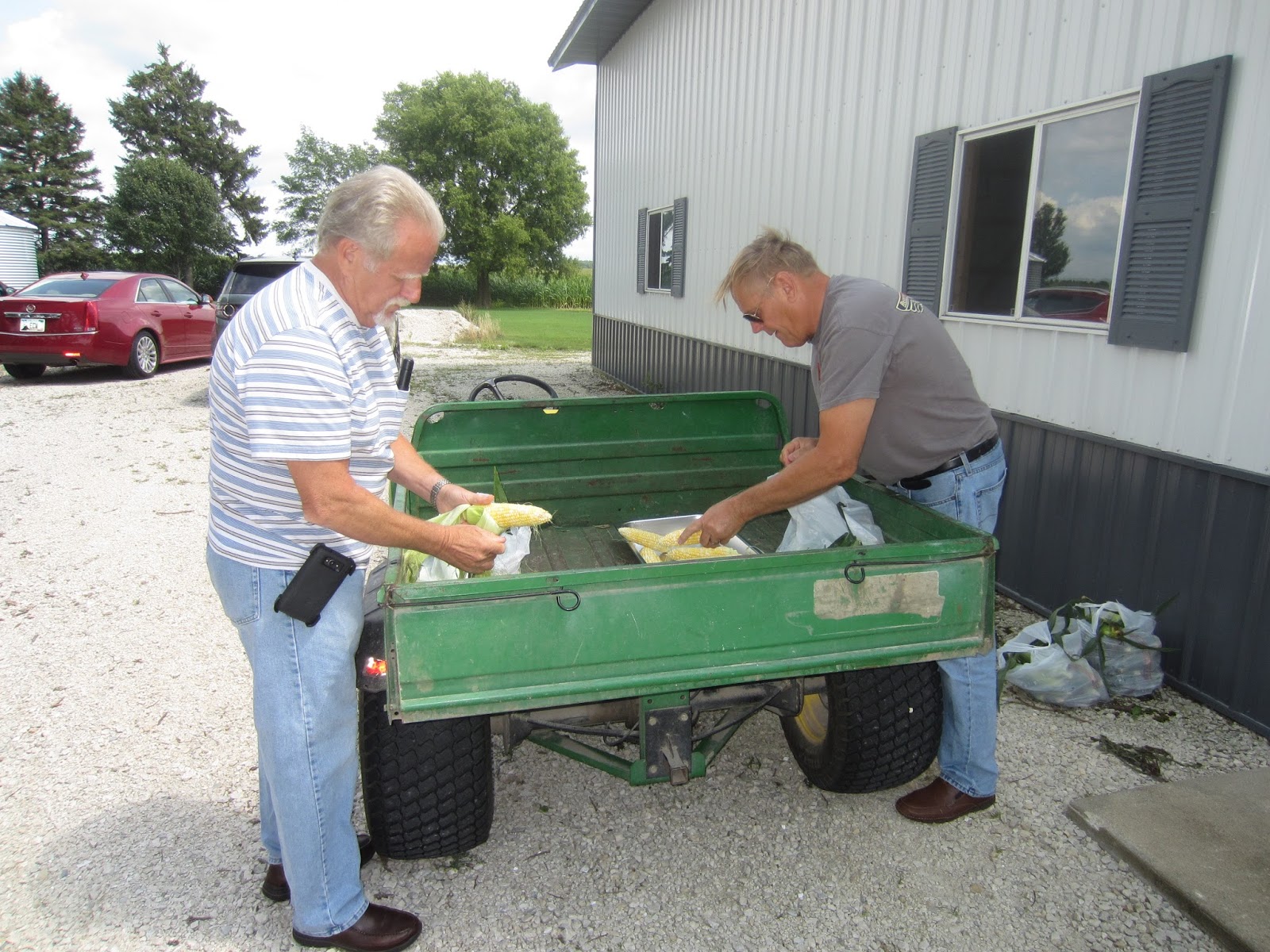 Bob Sroka shucked the recently picked corn. The buffet tables held beans,